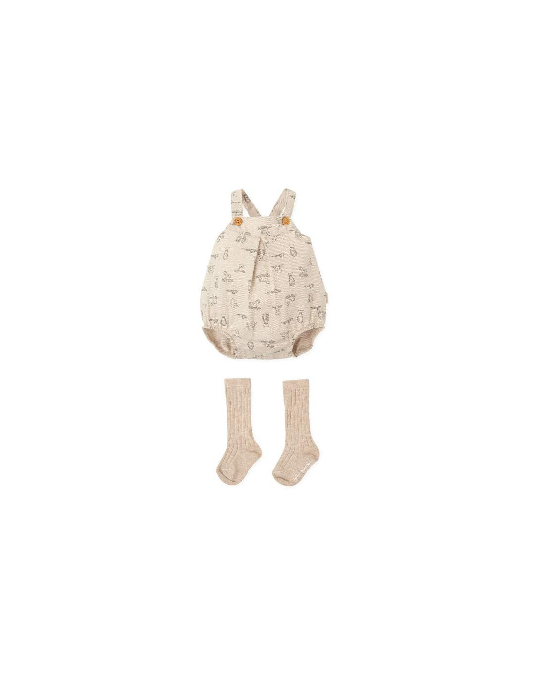 PETO ESTAMPADO BEIG CON CAMISETA BEIG Y CALCETAS TUTTO PICCOLO
