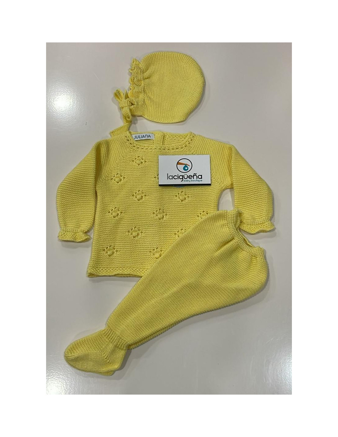 CONJUNTO HILO MANGA LARGA ROMBOS CALADOS AMARILLO JULIANA
