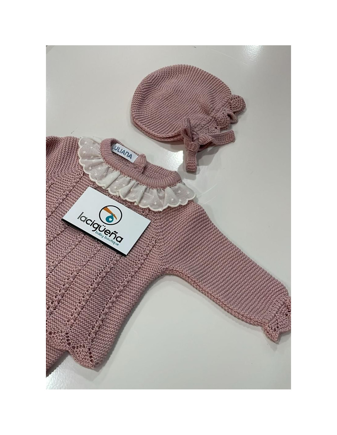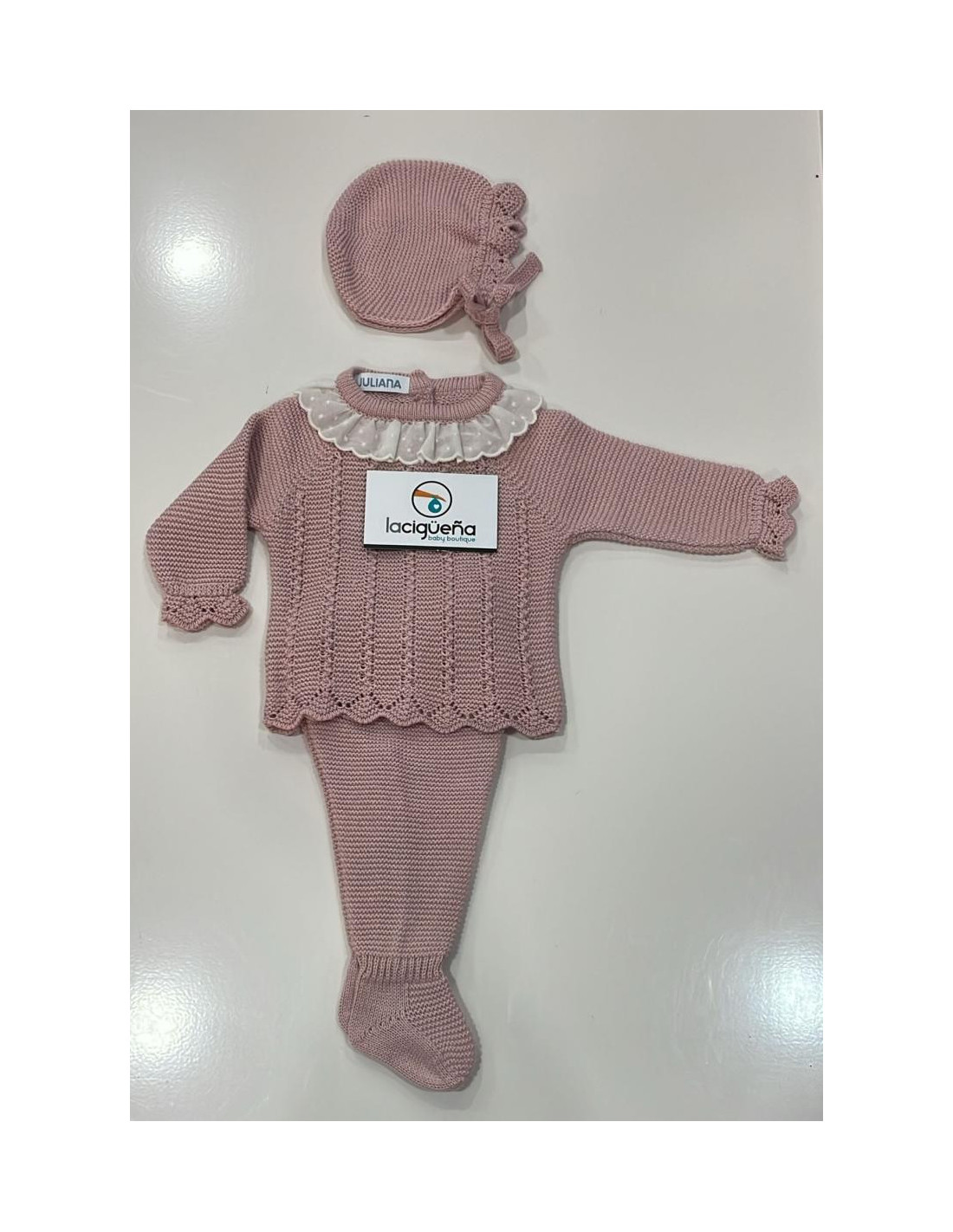 CONJUNTO HILO MANGA LARGA CALADOS VERTICAL ROSA EMPOLVADO JULIANA