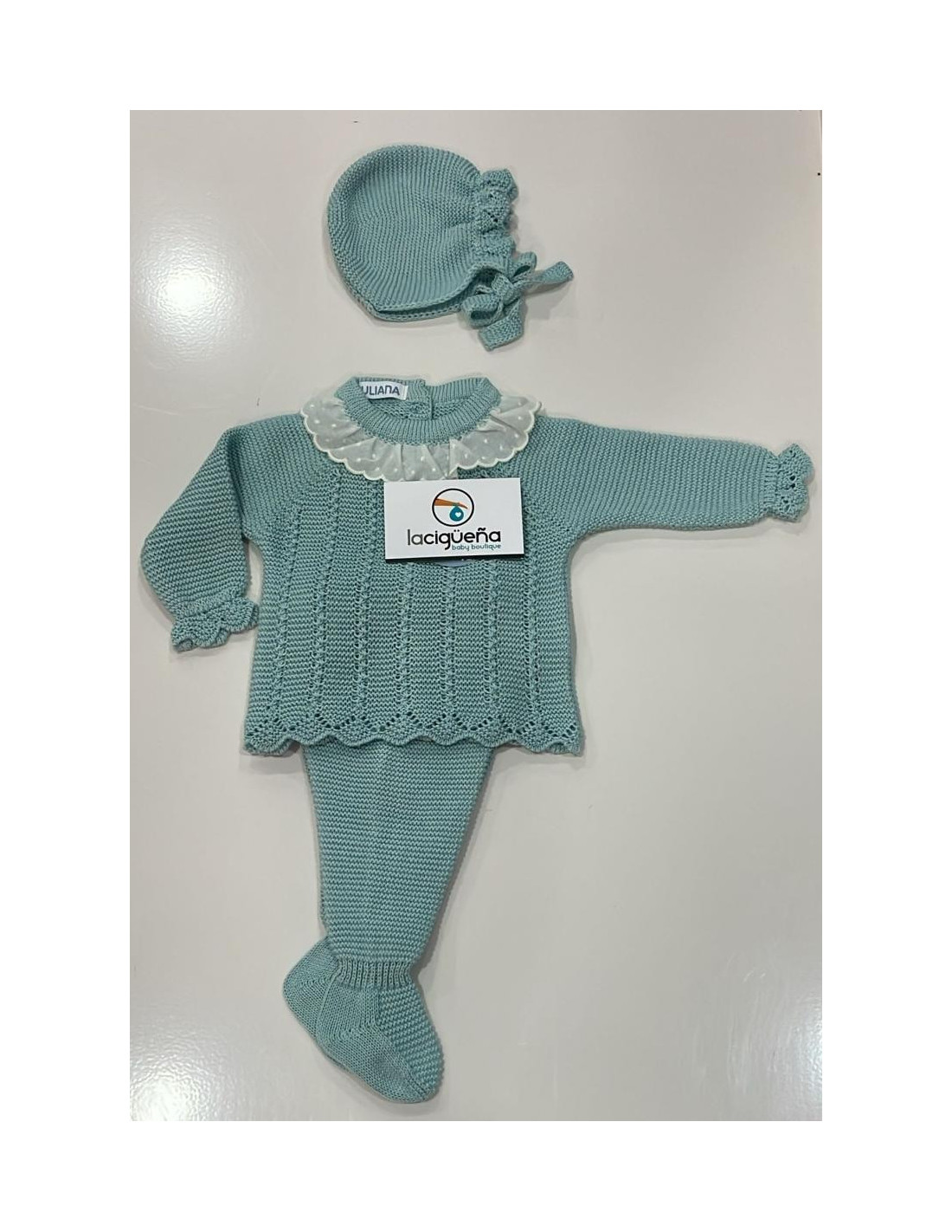 CONJUNTO HILO MANGA LARGA CALADOS VERTICAL VERDE AGUA JULIANA