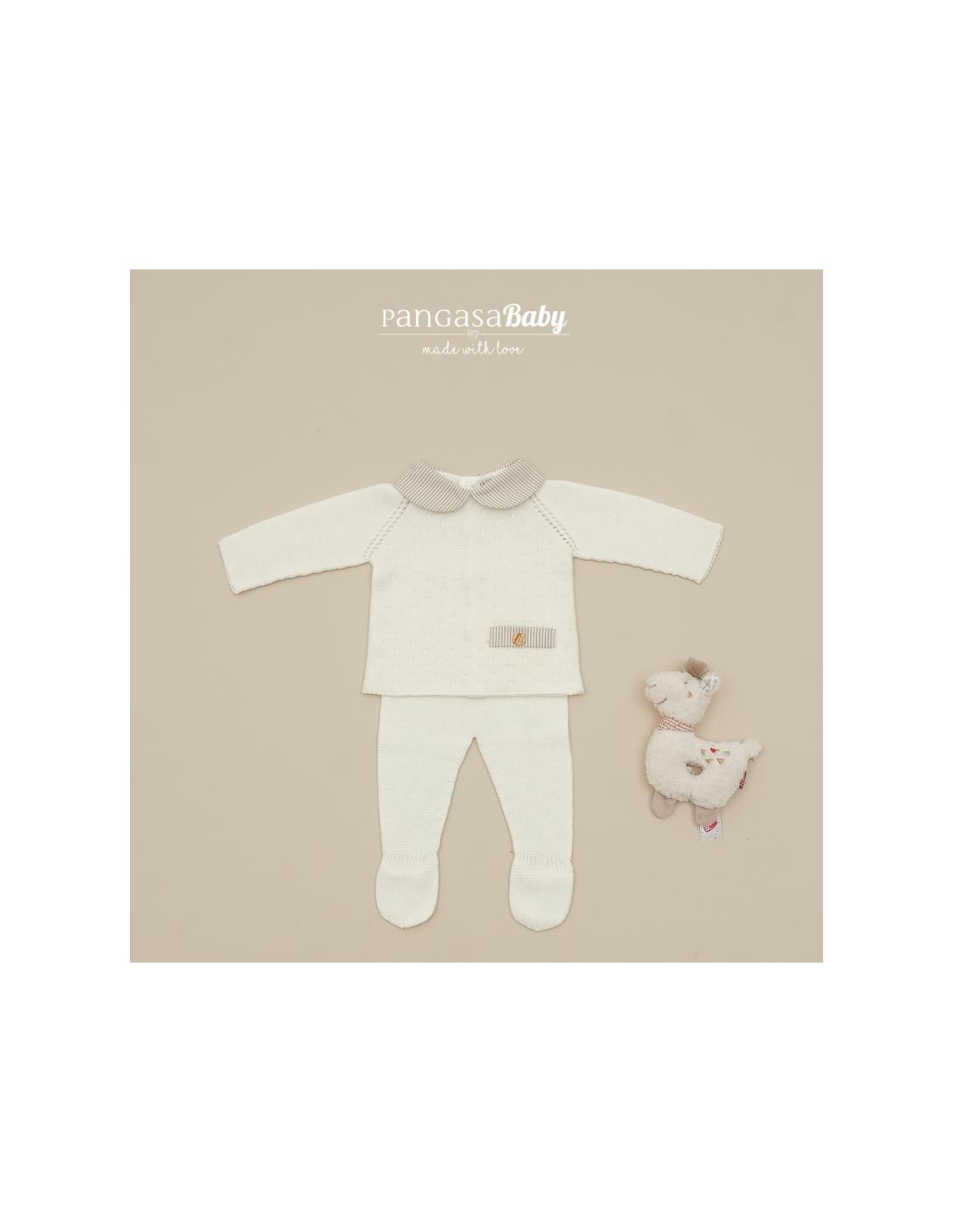 CONJUNTO HILO 3 PIEZAS MANGA LARGA MELOCOTON RAYAS BEIG PANGASA