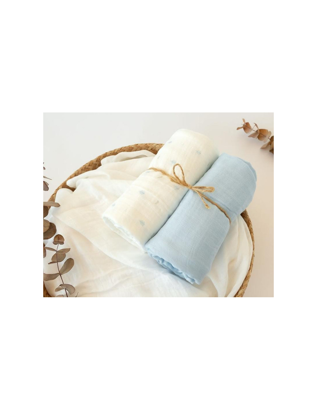 PACK 2 MUSELINAS BAMBU PETIT MOMENTS AZUL KIO KIDS