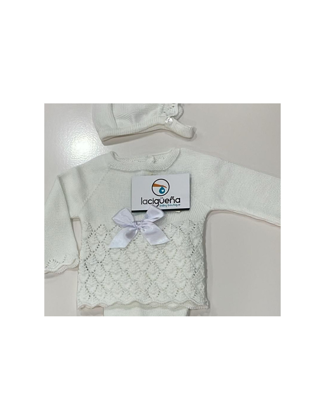 CONJUNTO HILO 3 PIEZAS MANGA LARGA CALADOS LAZITO BLANCO PRIM BABY
