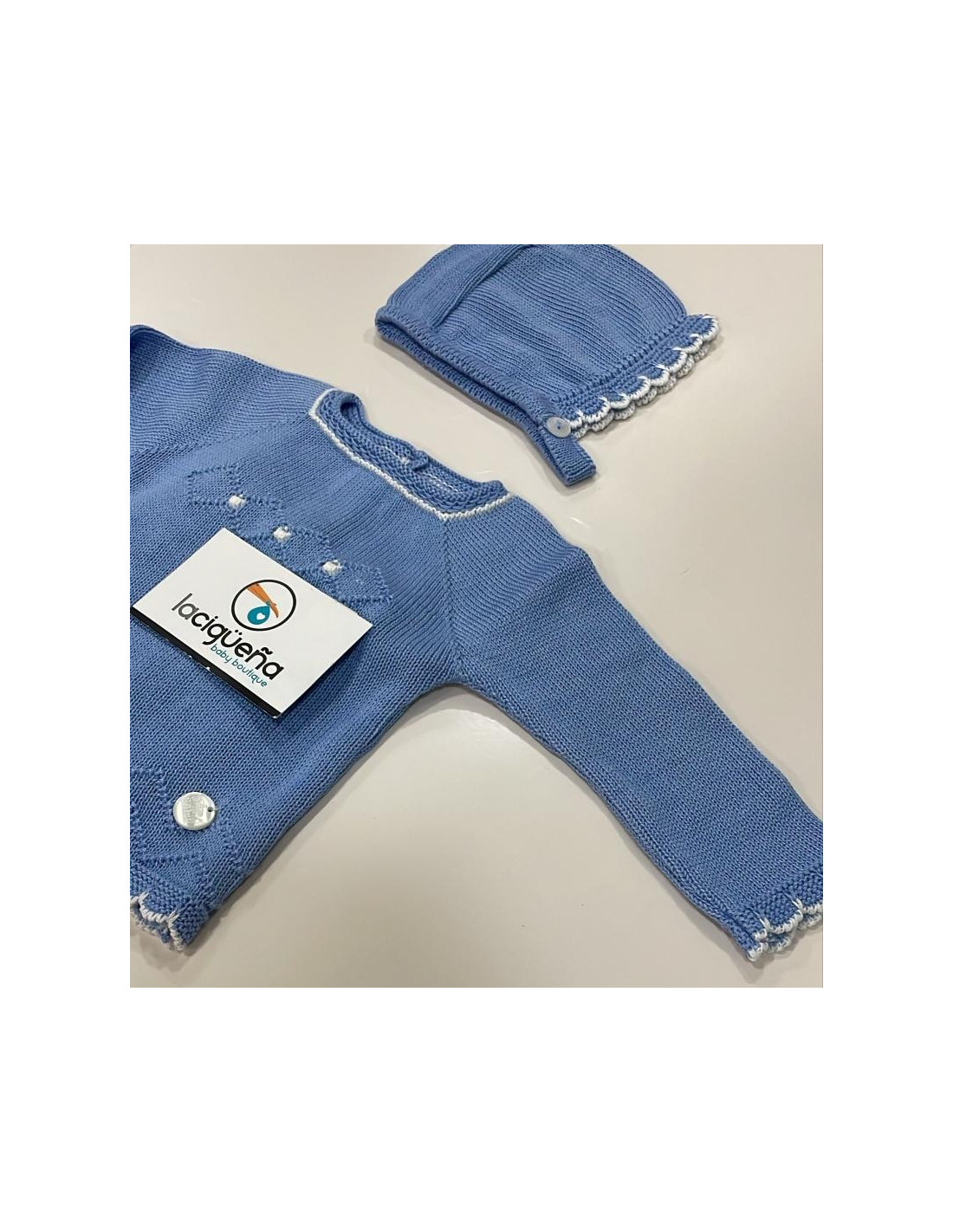 CONJUNTO HILO 3 PIEZAS MANGA LARGA ROMBO BODOQUES AZUL AZAFATA PRIM BABY