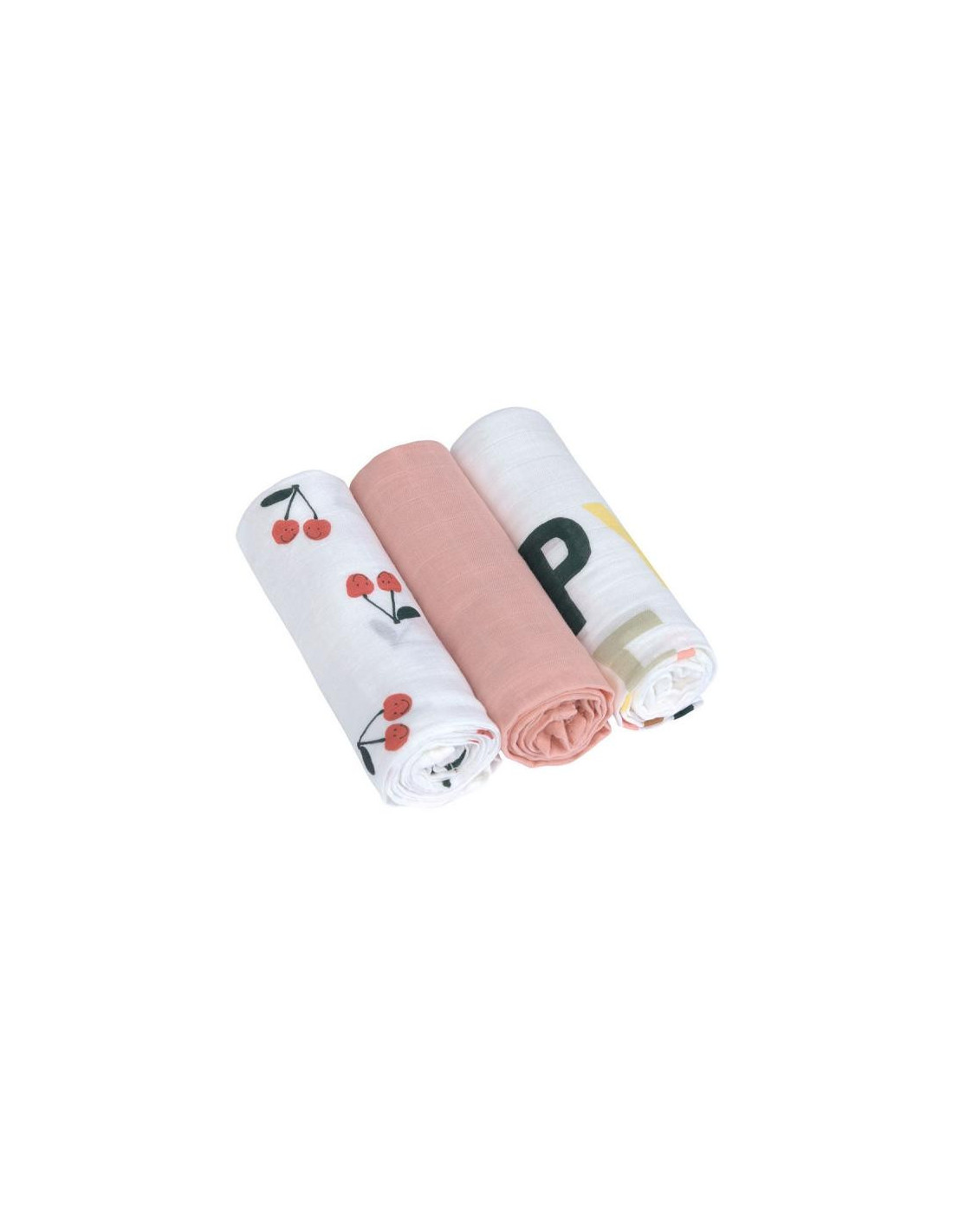 PACK 3 GASAS BAMBOO HAPPY FRUITS CHERRY ROSA OLMITOS