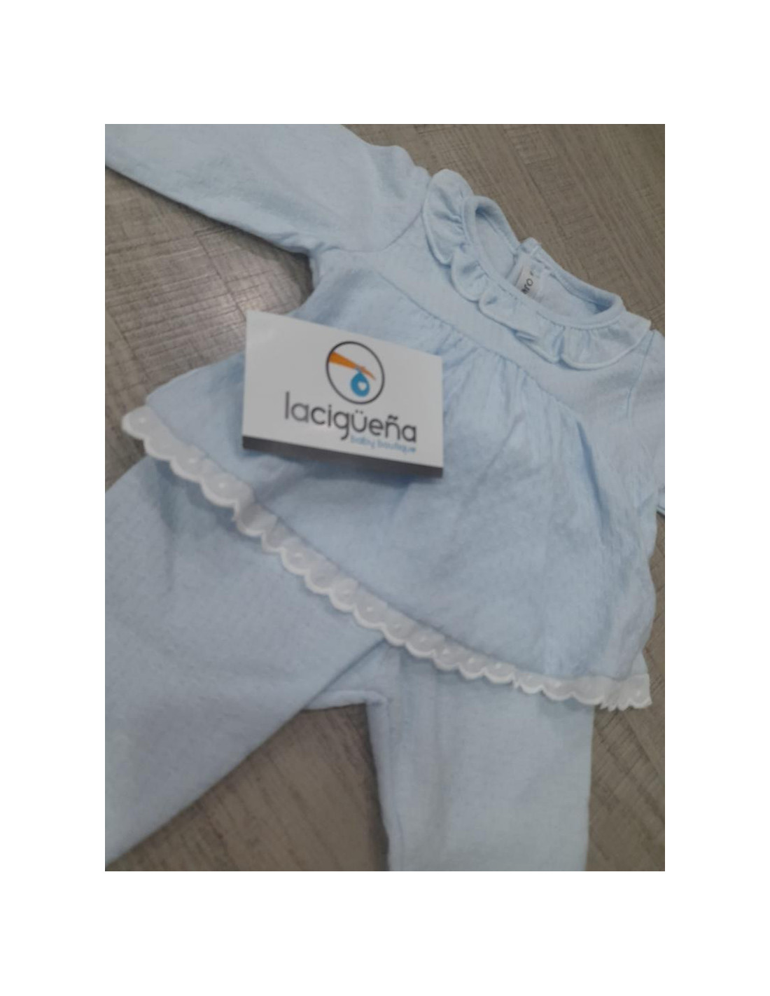 Conjunto en algodón 100% camiseta manga larga abierta con corchetes por la espalda y polaina con elastico en la cintura,