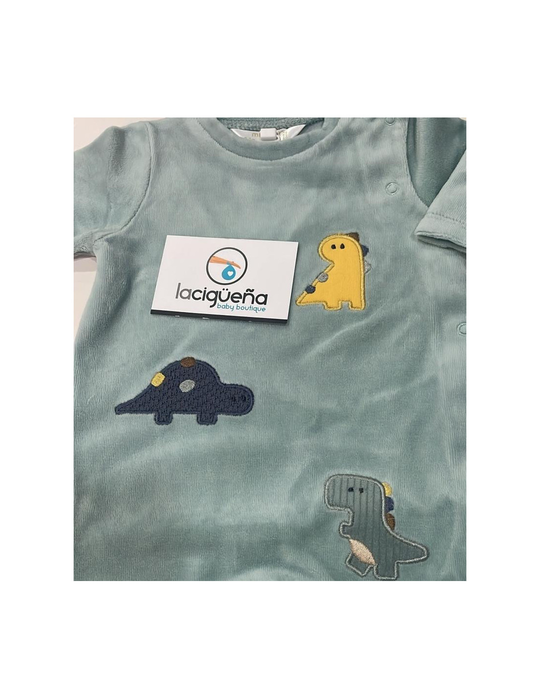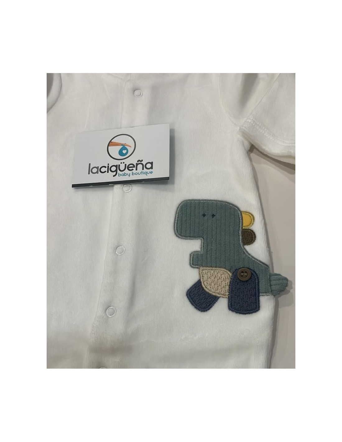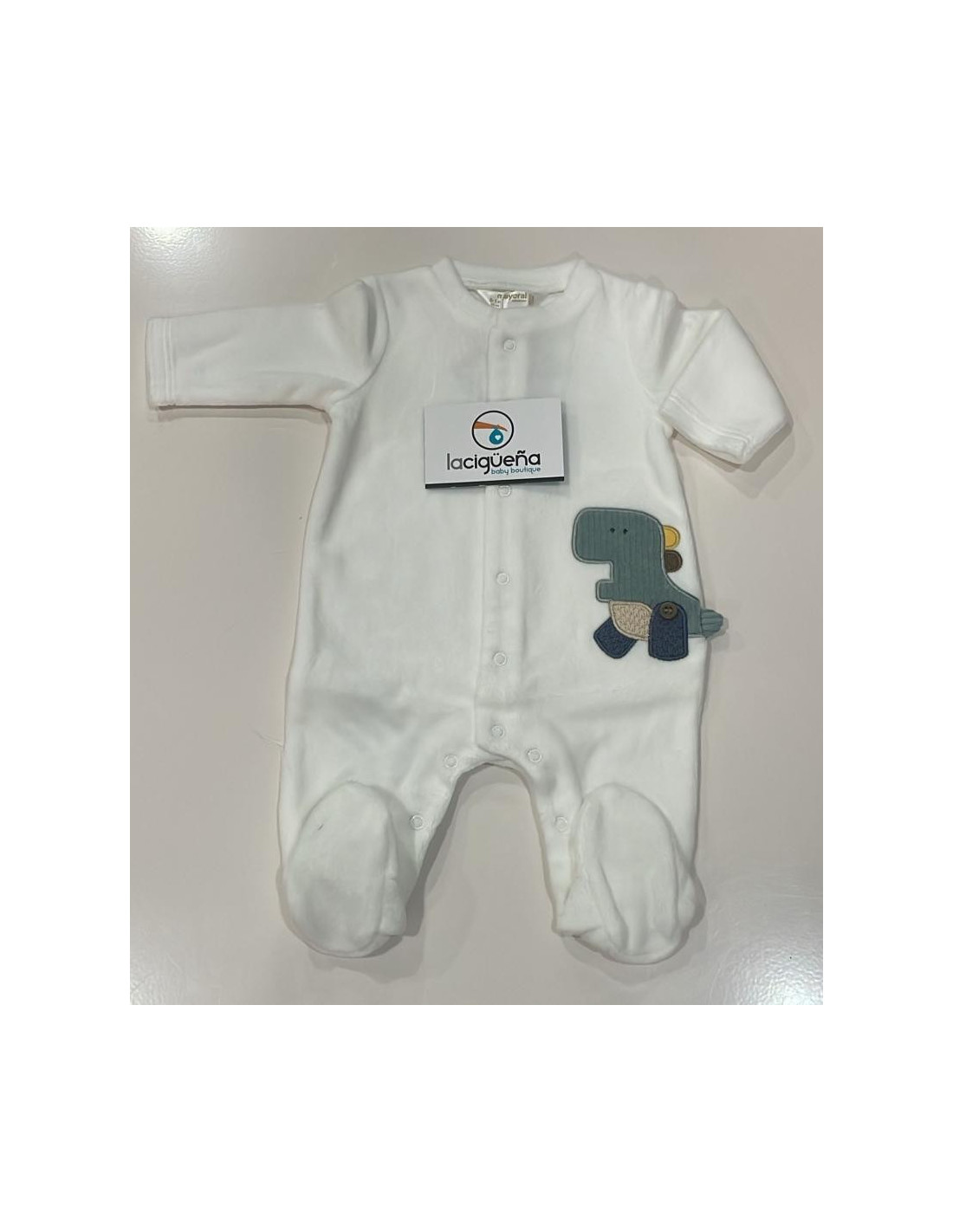 Pijama de manga larga para recién nacido. Cuello redondo. Cierre con botones a presión en la parte delantera. Botones a presión en la entrepierna para facilitar la puesta de la prenda. Cálido tejido de algodón con tacto suave y aterciopelado. Elementos de adorno: bordados. Las tallas mayores de este modelo (12 y 18 meses) presentan una suela antideslizante.