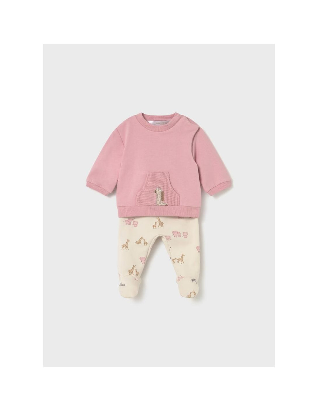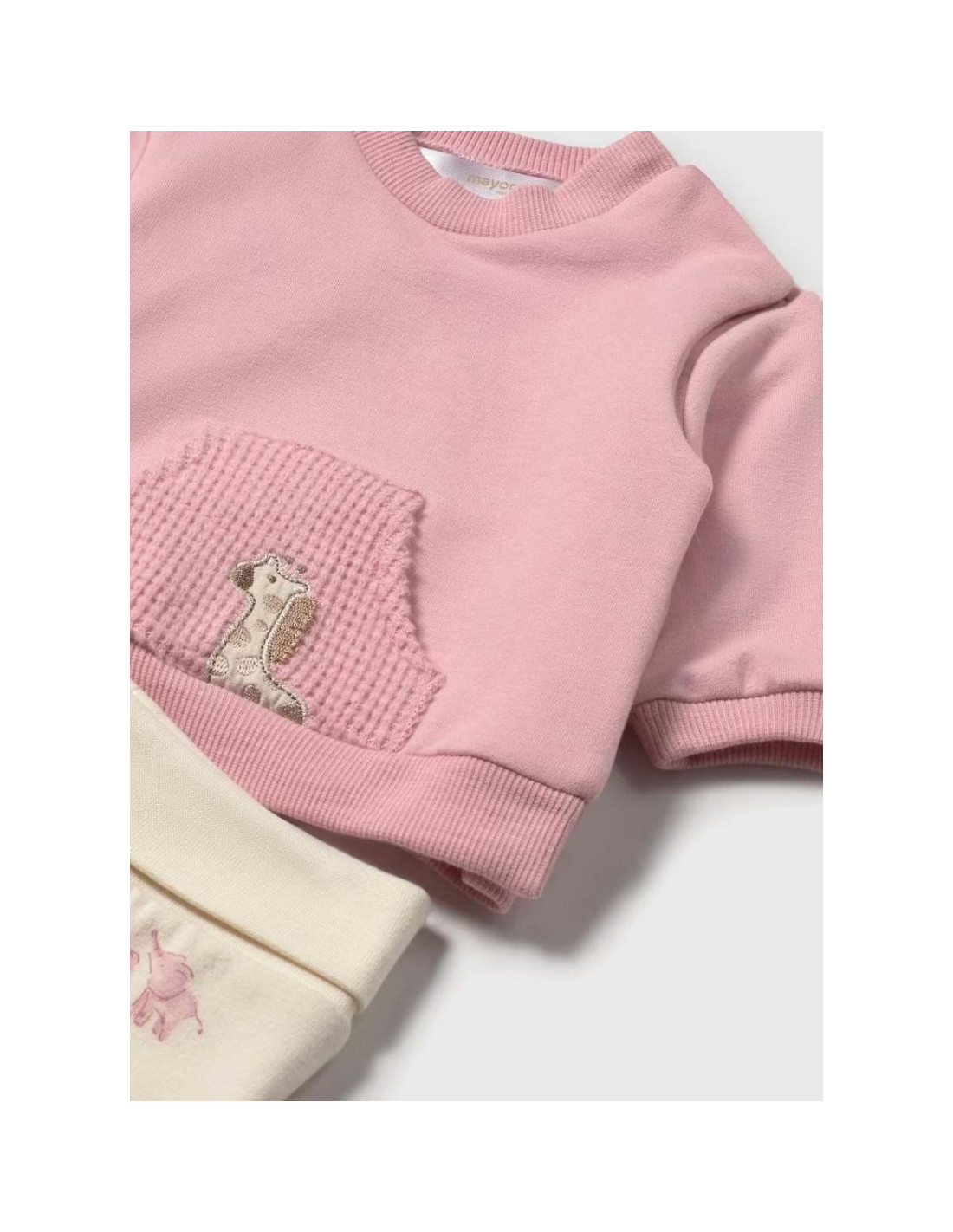 Conjunto de dos piezas para recién nacida compuesto por una sudadera y polaina a juego.