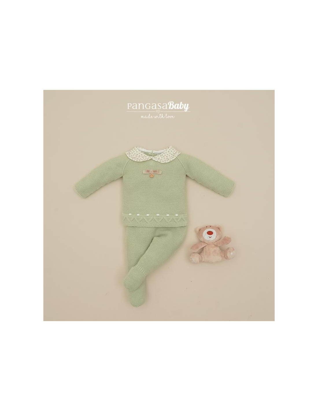 CONJUNTO LANA CON GORRO VERDE CUELLO FLORES PANGASA