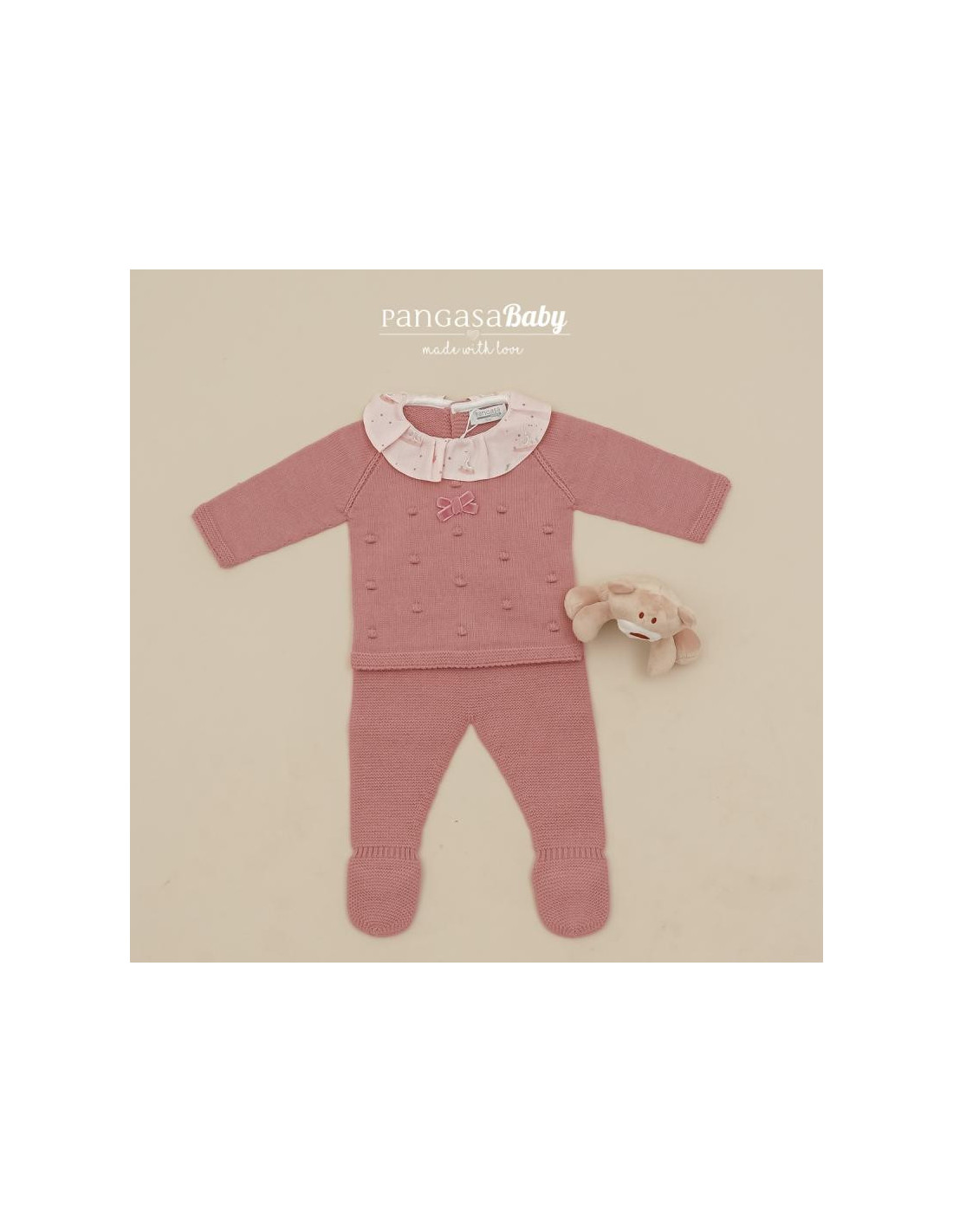 CONJUNTO LANA CON GORRO PATO ROSA OSCURO PANGASA