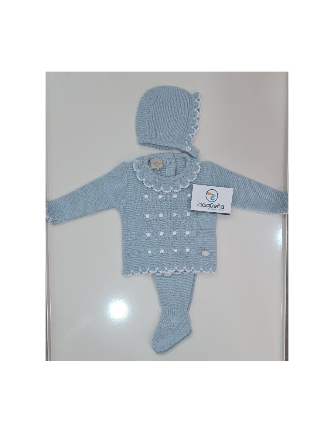 CONJUNTO 3 PIEZAS LANA LATERAL TACHON BODOQUES CIELO PRIM BAB