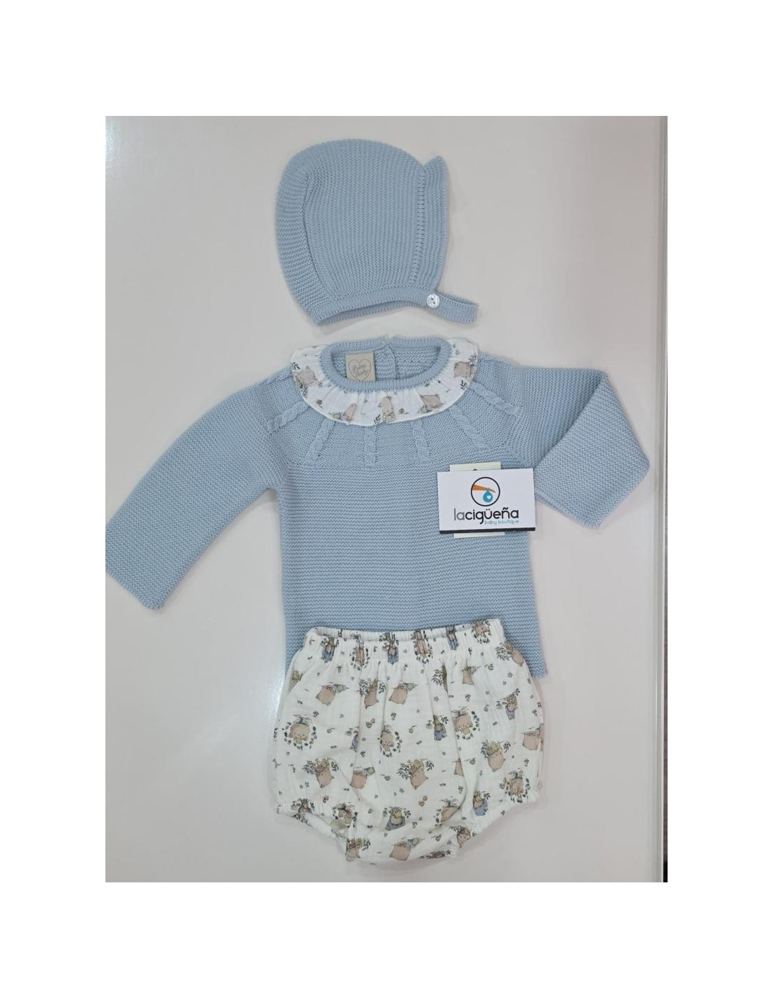 JERSEY LANA CIELO CON RANITA BAMBULA CONEJITOS CIELO + GORRO PRIM BABY