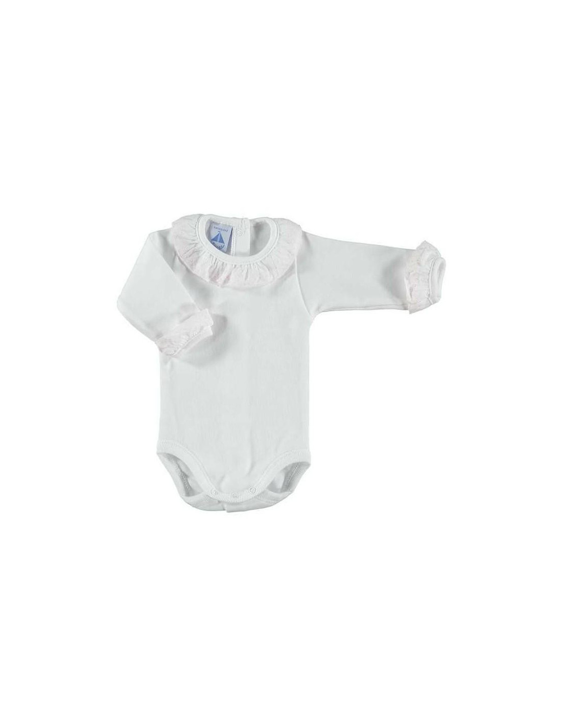 Los bodys con cuello volante aportan un toque distintivo. Con broches o corchetes en la parte trasera permitiendo abrir completamente por la espalda en body.