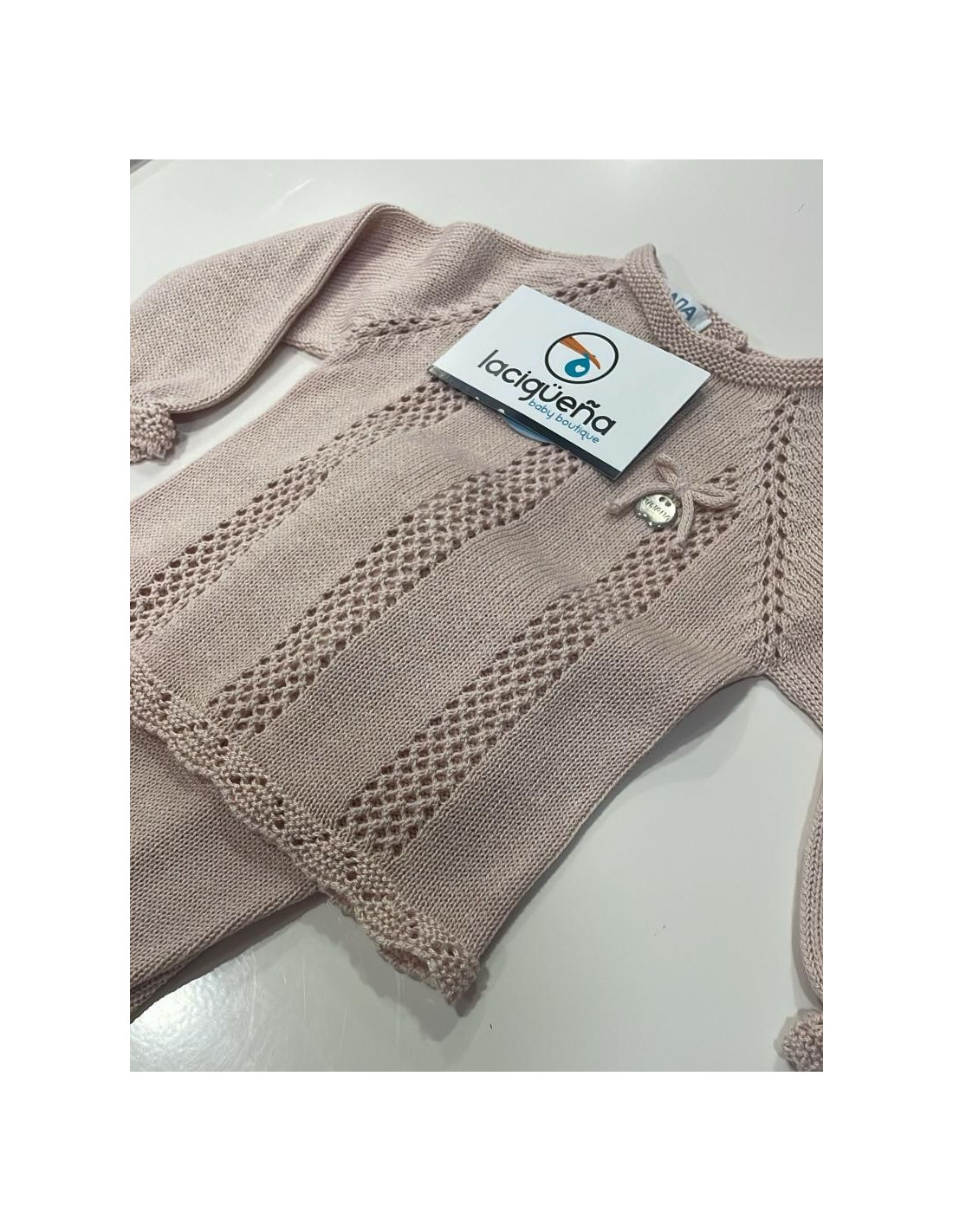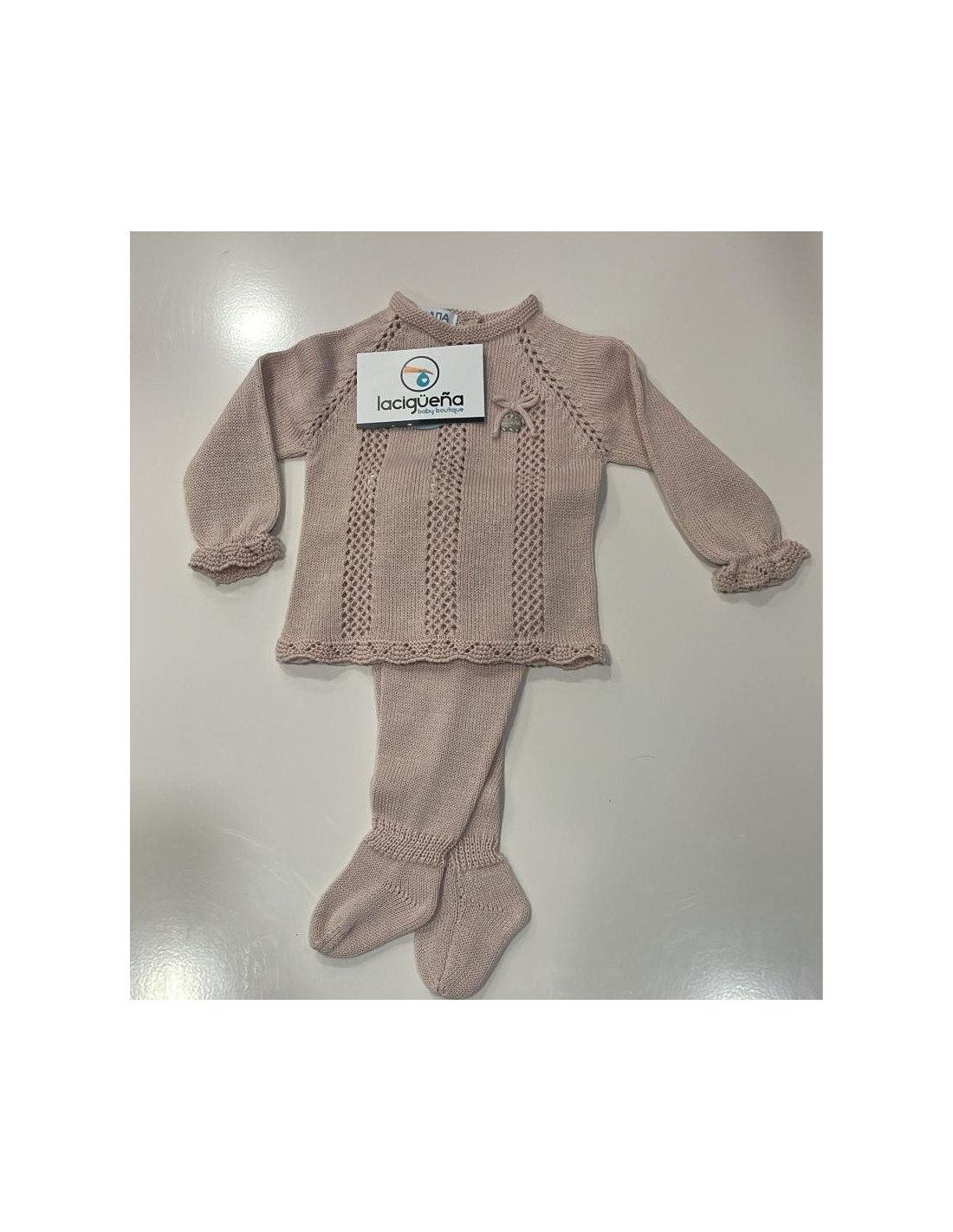 CONJUNTO 2 PIEZAS HILO MANGA LARGA TIRAS CALADAS VERTICAL ROSA PALO JULIANA