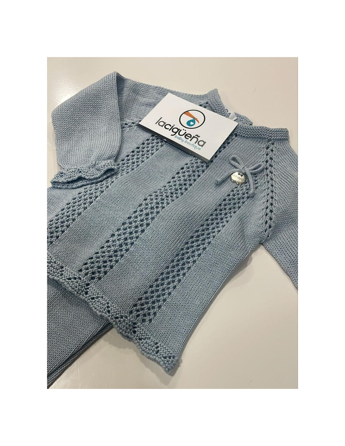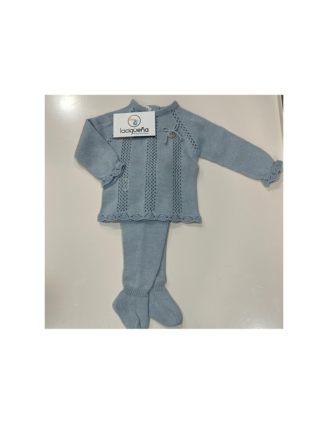 CONJUNTO 2 PIEZAS HILO MANGA LARGA TIRAS CALADAS VERTICAL AZUL PASTEL JULIANA