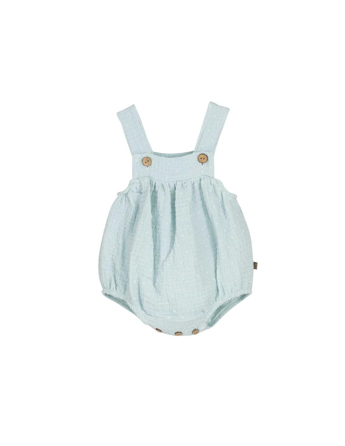 El detalle del plumeti (esos pequeños lunares en relieve tejidos en la propia tela) junto al tono Verde Agua/Verde Mar, aporta un aire vintage y sofisticado que convierte a esta ranita en la protagonista de cualquier evento o sesión de fotos.