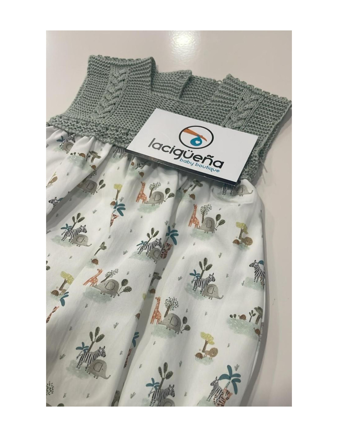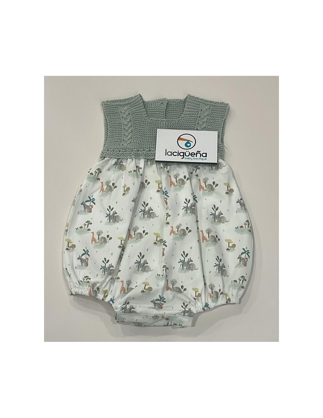 Pelele sin manga cuerpo hilo verde y estampado selva