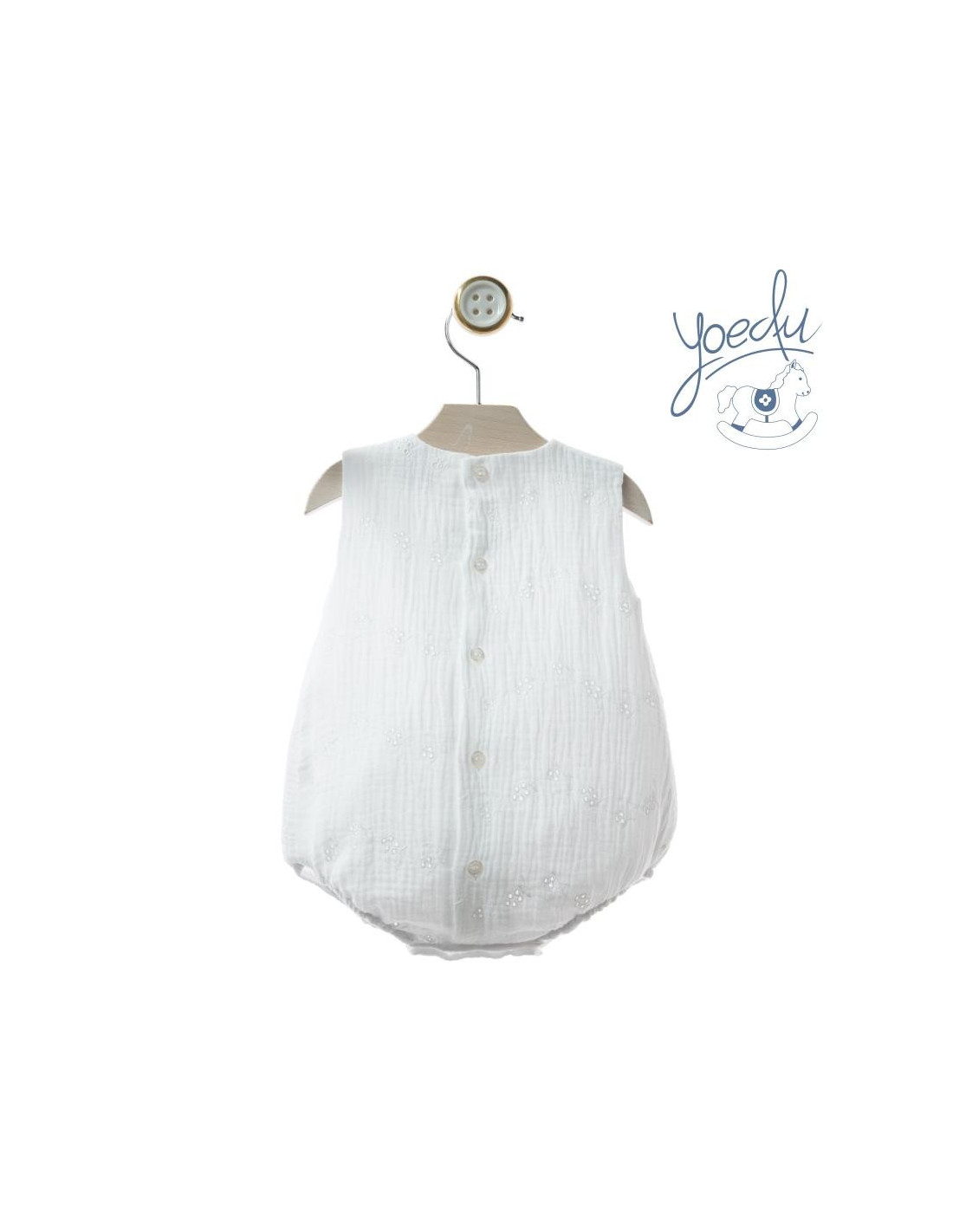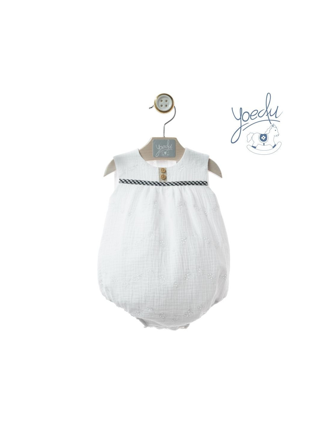 Pelele sin manga batista perforada con detalle en vichi negro.