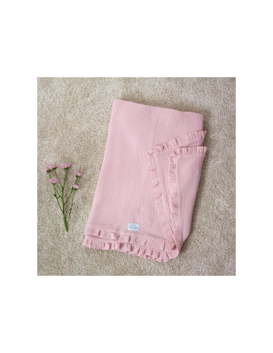 ARRULLO MUSELINA CON VOLANTE ROSA