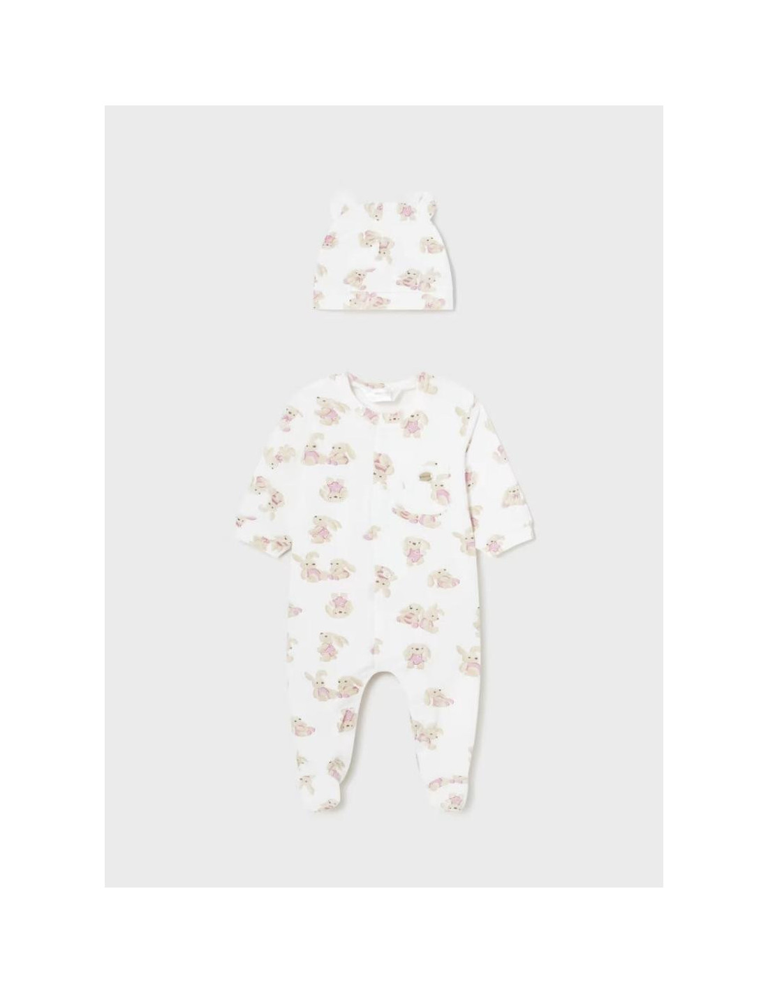 PELELE ALGODON CON GORRO CONEJITOS ROSA