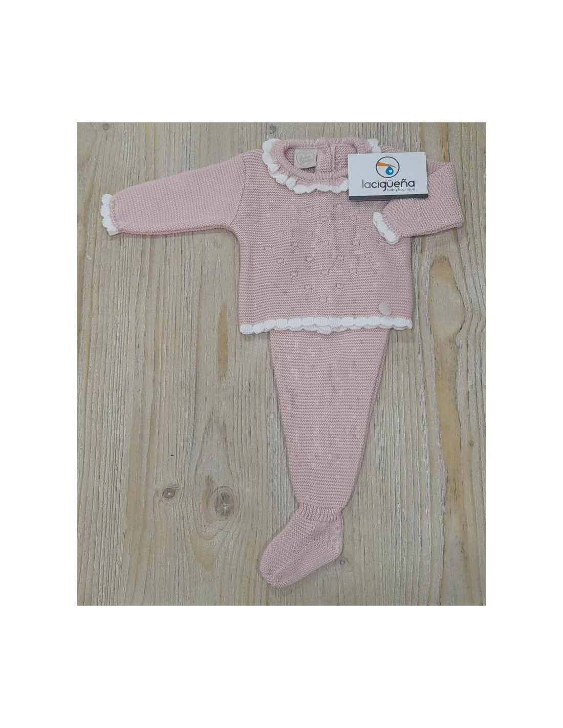 CONJUNTO HILO MANGA LARGA ROSA EMP BLANCO