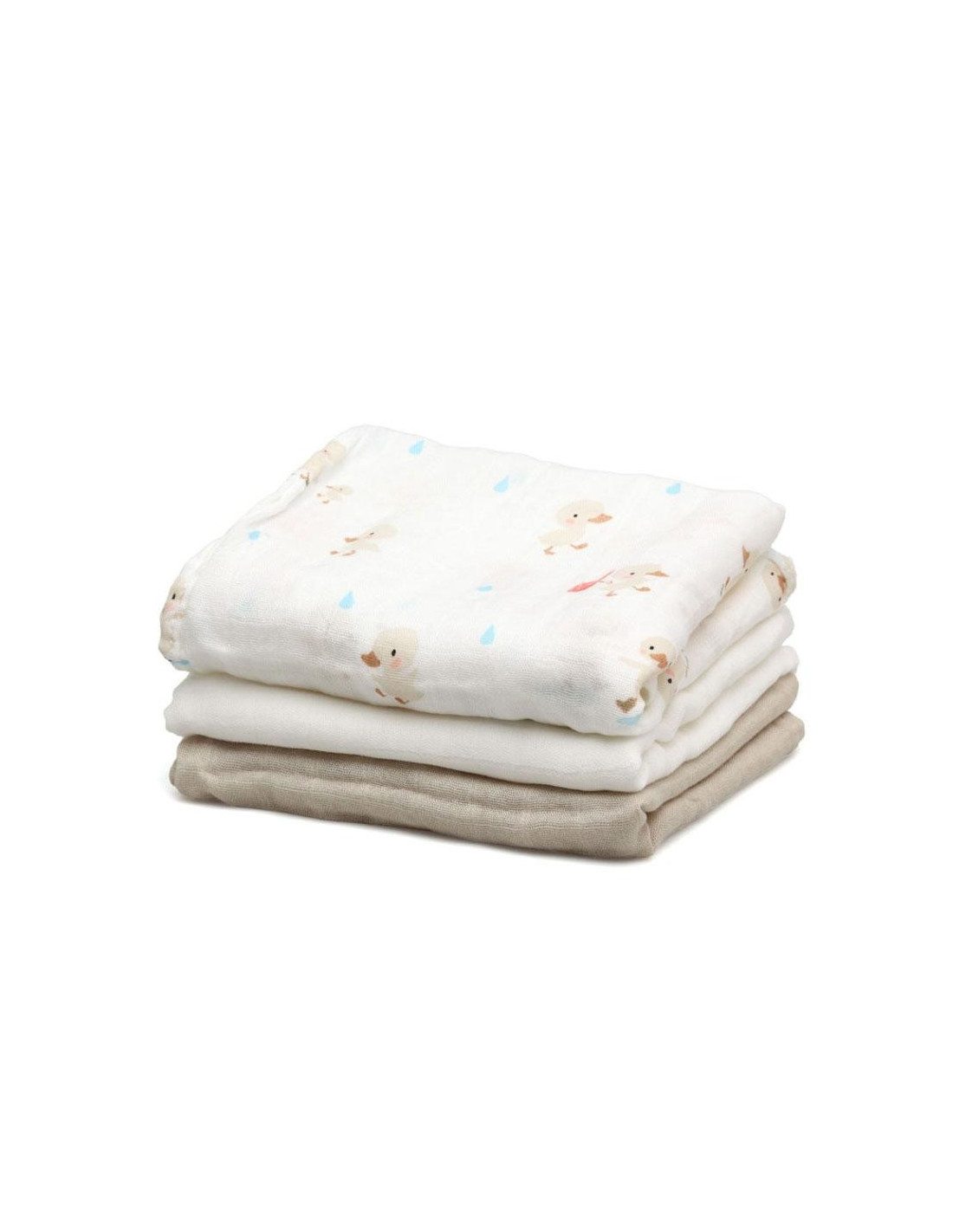 PACK 3 GASAS BAMBU PATITOS BEIG 70*70 KIOKIDS