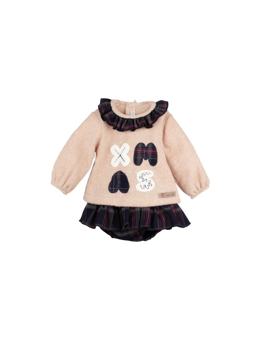 JERSEY NIÑA LANA CAMEL+BRAGA FALDITA CUADROS NAVIDAD CAMEL CALAMARO
