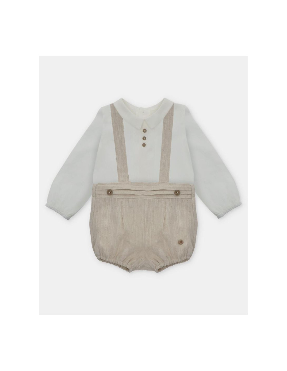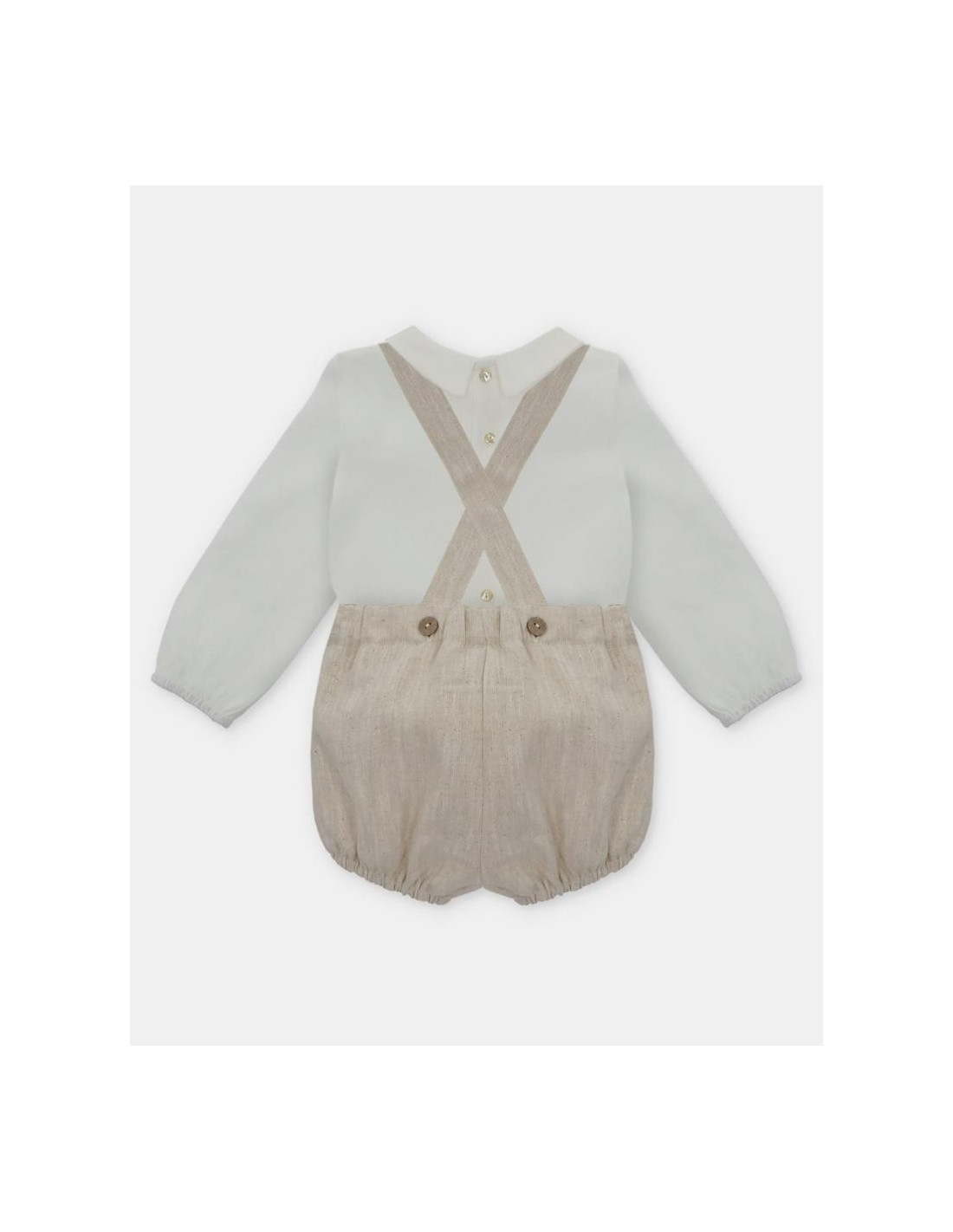 Peto lino con camisa de manga larga tambíen confeccionada en lino.