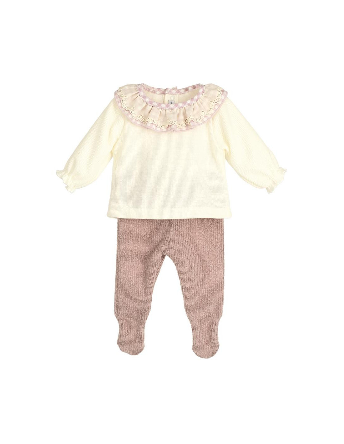 Conjunto de polaina y jersey con cuello bebé en vichi.