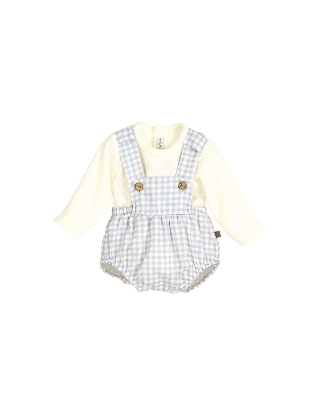 Camiseta manga larga 100% algodón y ranita en cuadros vichi azul.