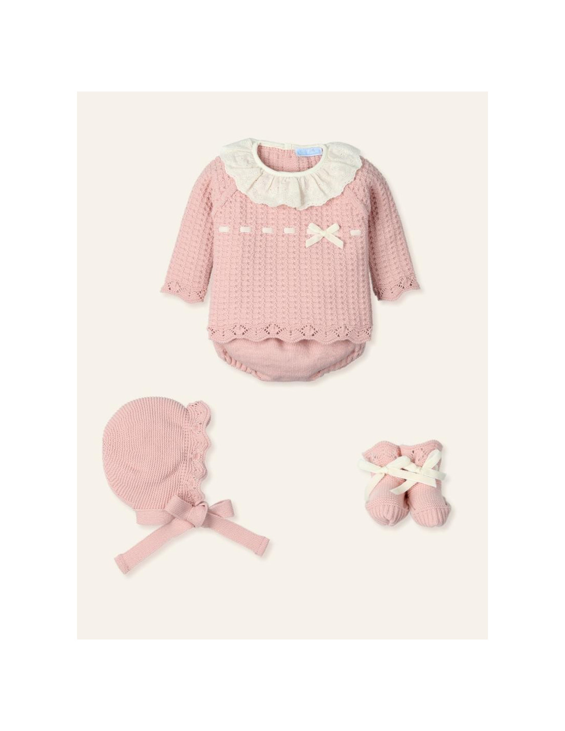 CONJUNTO LANA 4 PIEZAS CON RANITA ROSA NUDE BEIG MAC ILUISON