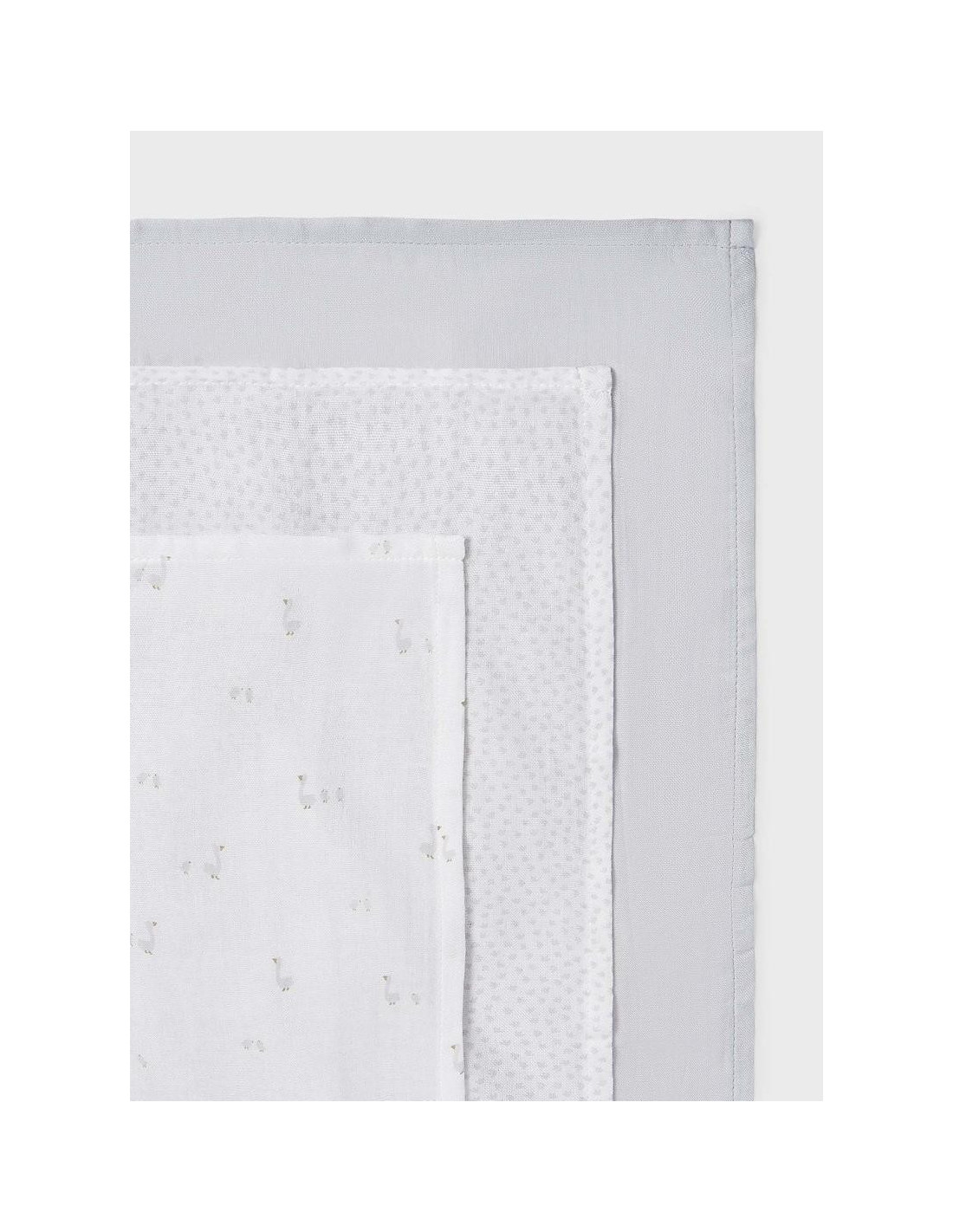El Set de 3 Gasas Mayoral Patitos Gris es ese accesorio que, aunque parece sencillo, se convertirá en el salvavidas oficial de tu día a día. Mayoral, conocida por su calidad en la confección, presenta este pack de muselinas en un suave tono celeste con un estampado clásico de patitos, combinando ternura y una utilidad infinita.
