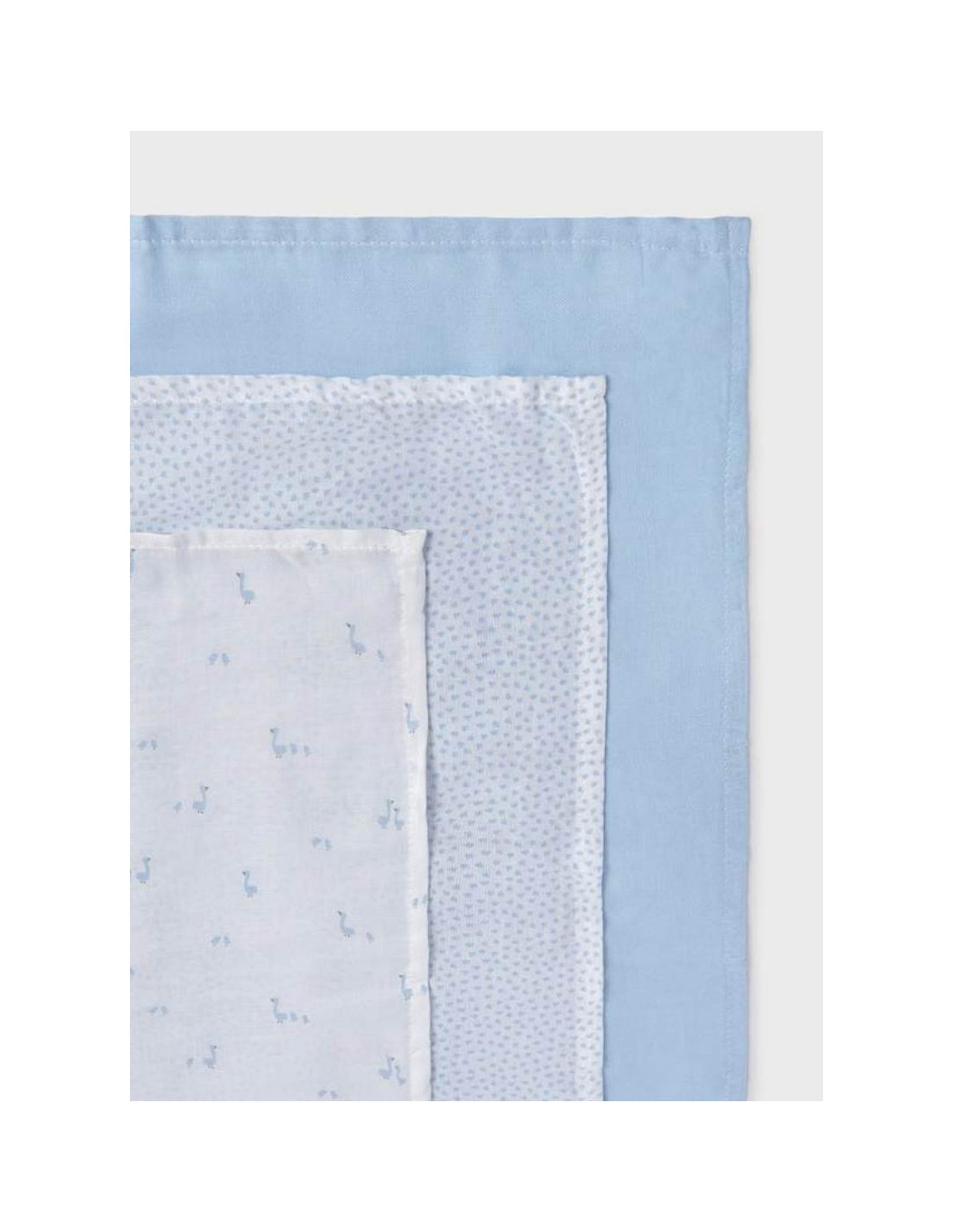 El Set de 3 Gasas Mayoral Patitos Celeste es ese accesorio que, aunque parece sencillo, se convertirá en el salvavidas oficial de tu día a día. Mayoral, conocida por su calidad en la confección, presenta este pack de muselinas en un suave tono celeste con un estampado clásico de patitos, combinando ternura y una utilidad infinita.