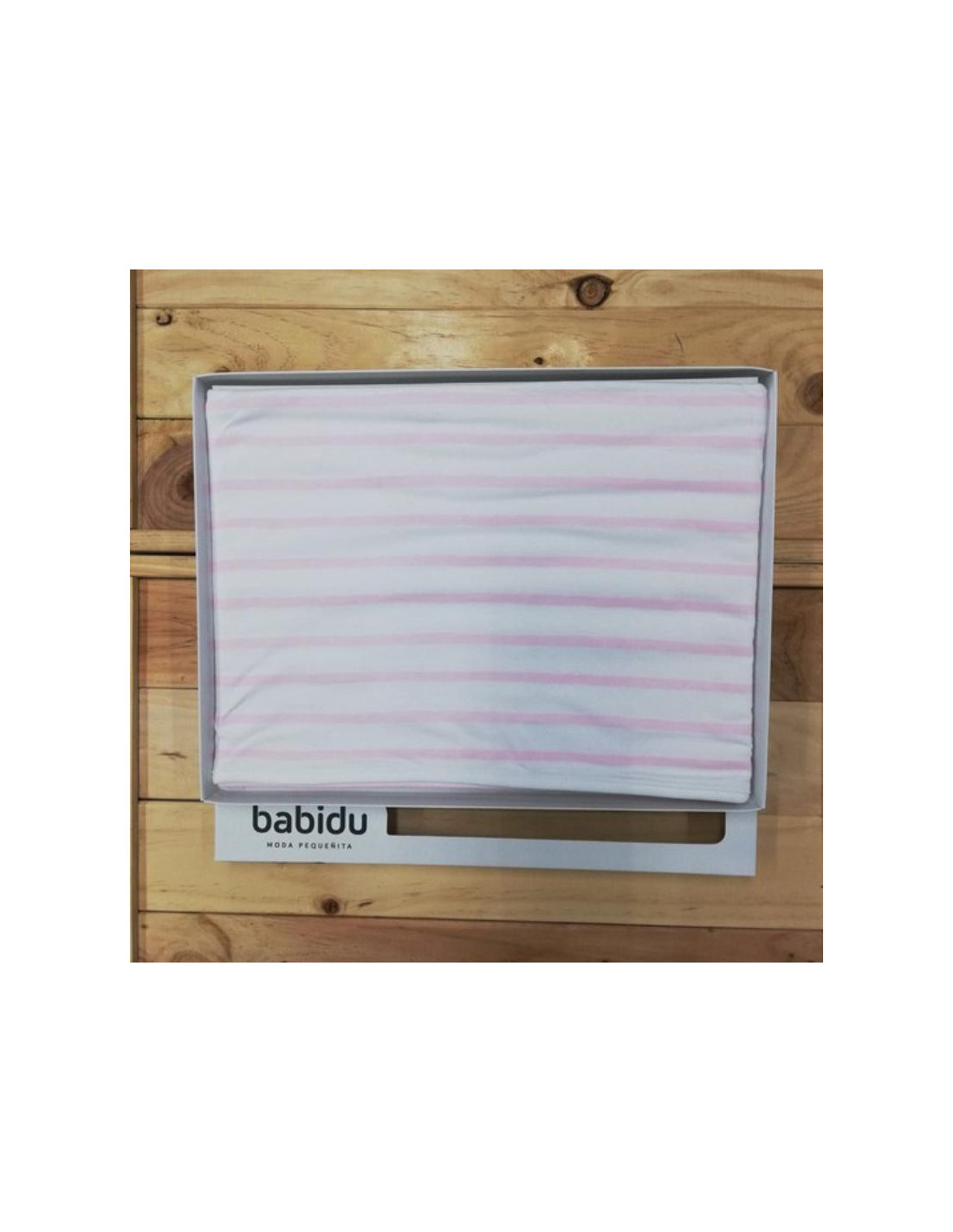 Arrullo para bebé, algodón 100%, Medida 80 x 80 cm, Fondo blanco con estampado de rayas de color rosa. Calidad y Comodidad para la piel sensible del bebé. Producto nacional.