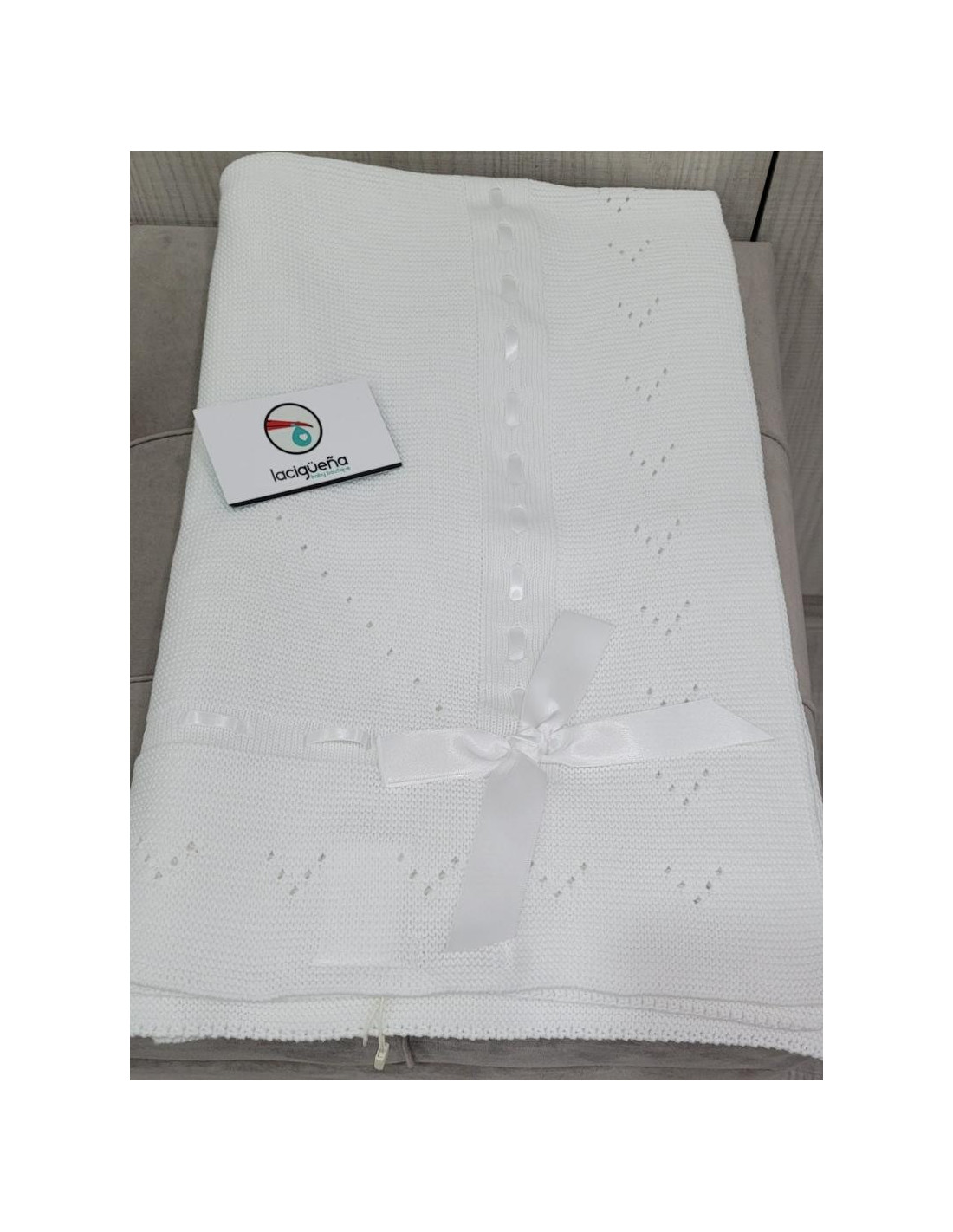 Preciosa mantita de algodón 100% con pasacintas al tono.